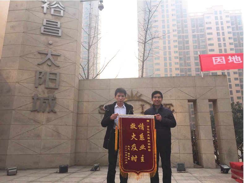 12月18日,2-2-2102的业主送来了一面“救火及时 情系业主”的锦旗和四份感谢信,随后应业主要求,将感谢信贴在了小区各个主要出入口。