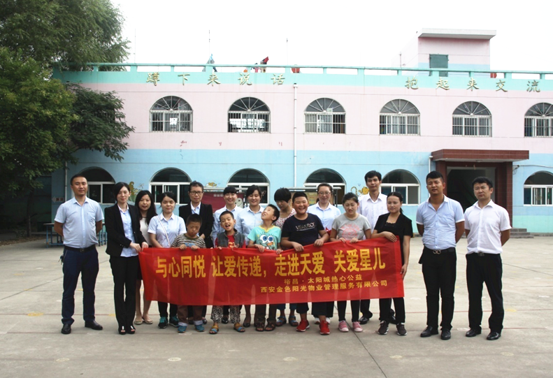 为了传递社会正能量,体现西安公司的社会责任感,关爱社会弱势群体,让“星星的孩子”更多地感受到社会给予他们的关爱,西安金色阳光物业管理服务有限公司财务部于2016年9月9日组织物业公司员工前往陕西天爱智障儿童康复中心,开展“爱心午餐”公益活动,为孩子们送去日常办公用品和纱窗、门锁等急需用品,以及米、面、油、卷纸、洗衣粉等日用品。“关爱弱势群体——与心同悦 让爱传递”一同走近自闭症儿童,更好的了解和帮助“星星的孩子”。