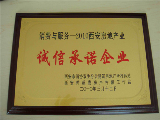 近日,由西安市工商局、西安市消费者协会等单位联合举办的“2009诚信企业”全民评选活动顺利结束,经过层层严格评选,我司高票当选,喜获“2009西安房地产诚信承诺企业”称号。
